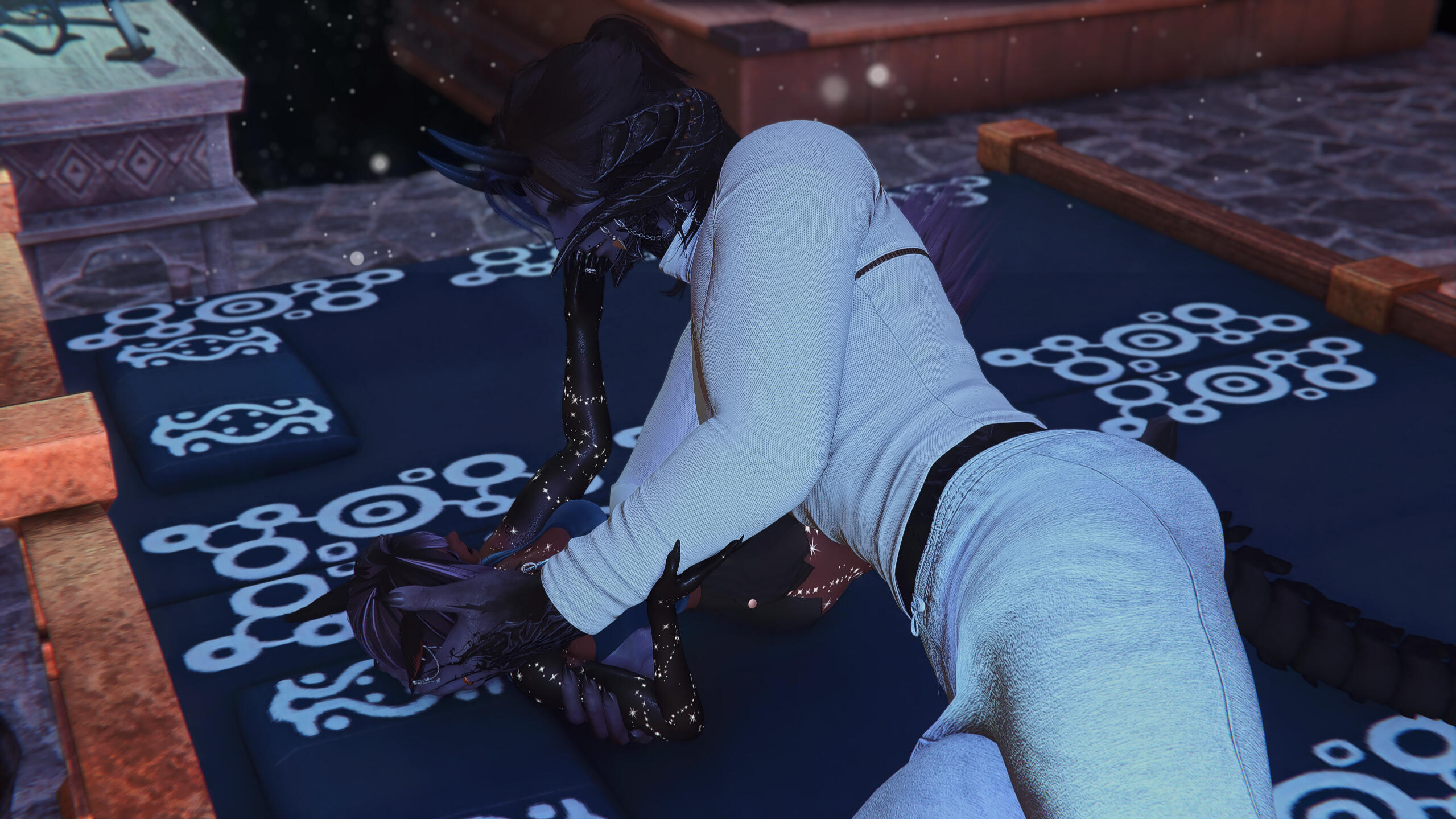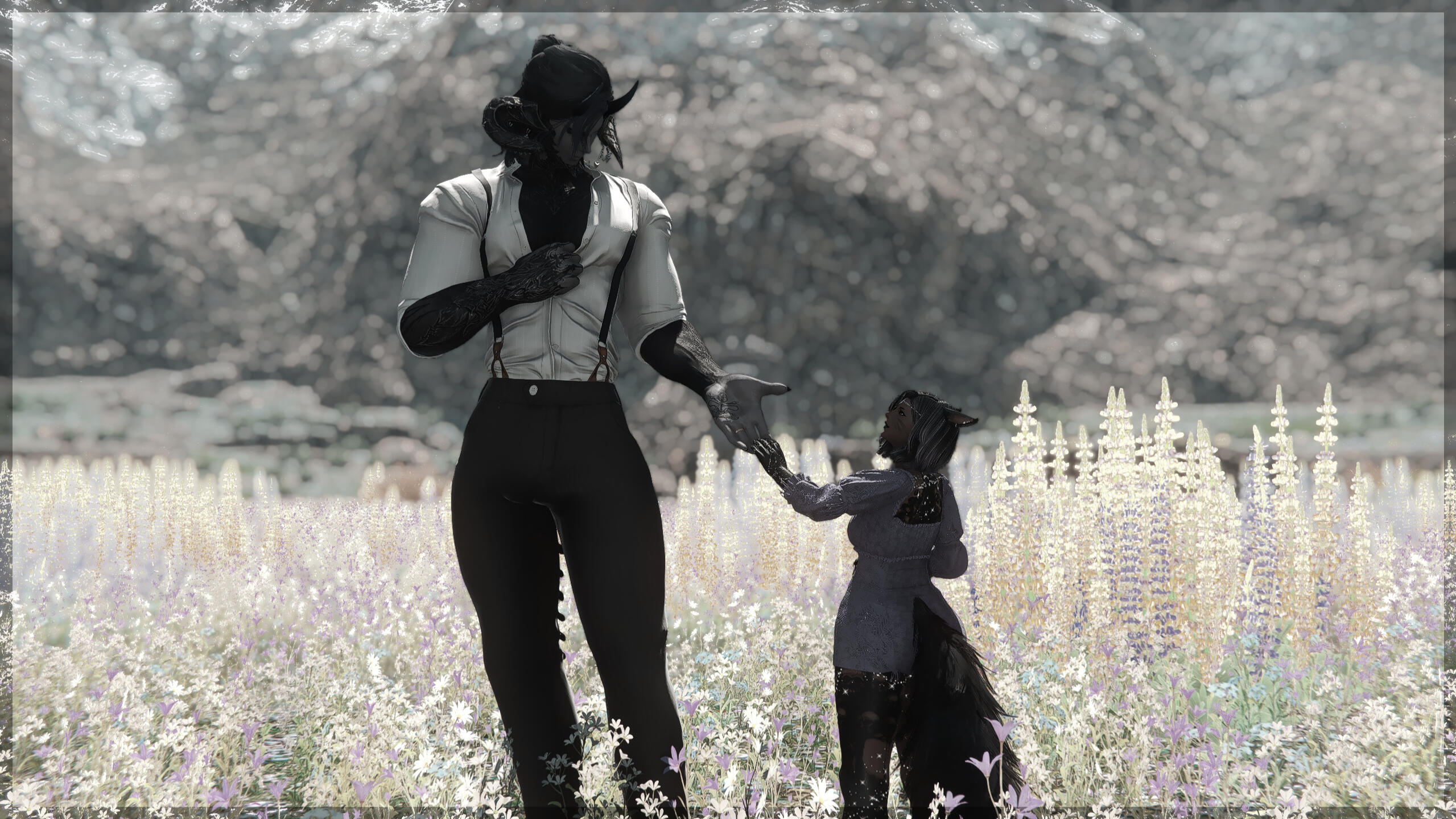 A colleague from the Scarlet Manor, the two talked a good many times. Yuuta was wary at first, as usual, when it came down to talking to new people, but he eventually agreed to spend time with the Miqo'te outside of work.After getting a nice late night dinner and some coffee, the two continued to talk and spend time together until an eventual relationship blossomed.They share many things in common including their love for books, something that Yuuta could enjoy for hours. Even in silence and a book in both of their hands, if Caelum is with him, Yuuta's happy.