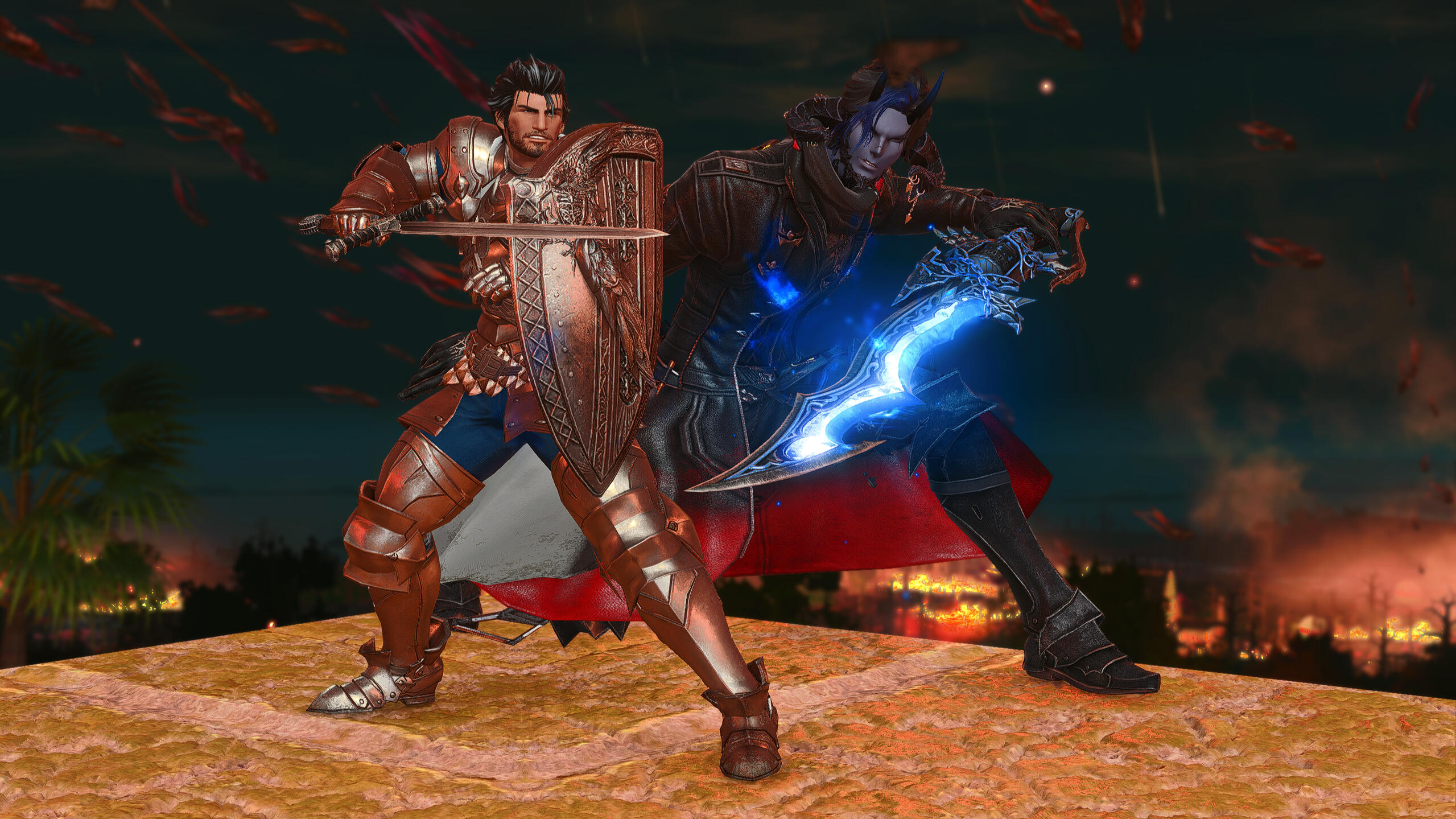 Upon reaching the age of seven, he was finally adopted by an Elezen couple. He was whisked away from his homelands to the Coerthas Central Highlands where he shelled up with the group known as the heretics. Being sheltered for his own good, he was rarely allowed to go out alone without the risk of being seen by the knights and killed on sight for his draconic appearance.